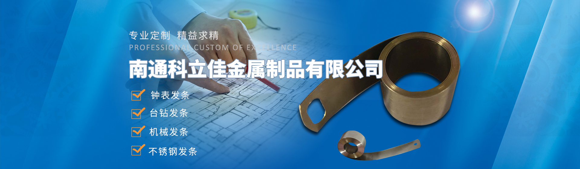 南通科立佳金屬制品有限公司(海門海南發條廠)建于1995年?,F有職工人數50多人是專業生產多品種花式發條的骨干企業,年生產能力500萬條,單品生產在100萬條以上。主要產品為鐘表發條、臺鉆發條、機械發條、不銹鋼發條、小型發動機起動發條、電刷彈簧、精良木工帶鋸、 精良裁布鋼帶和彈簧帶鋼類的各色制品制件。產品行銷全國20多個省、市、自治區。同上海正峰公司、美國百得楊州電動工具分公司、朝鮮自治區延邊龍川公司結為長期伙伴關系......
